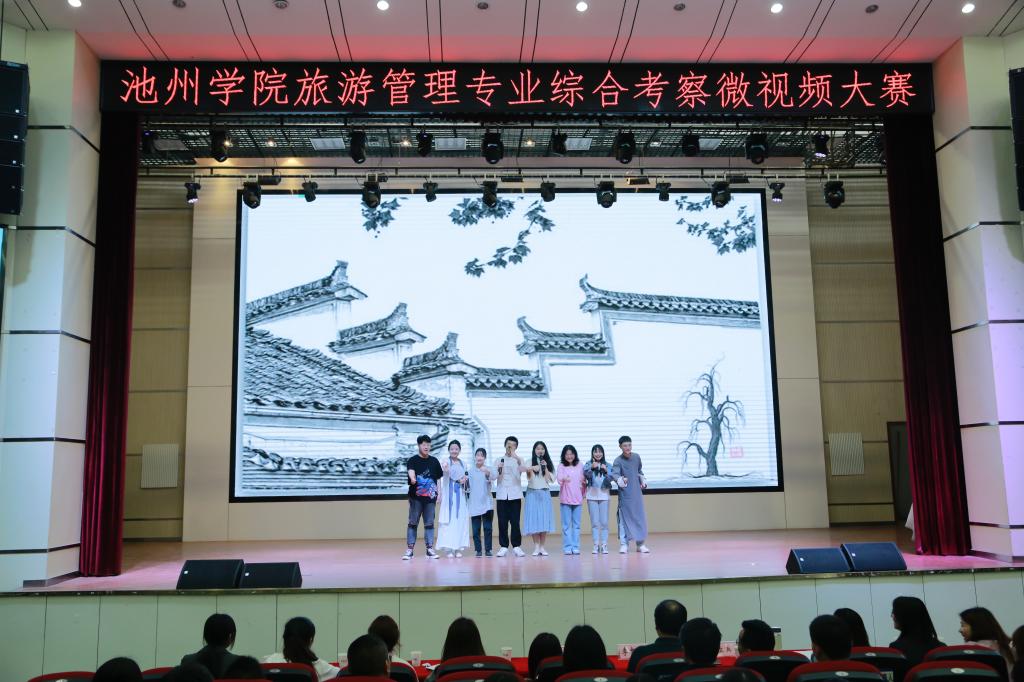 本次比赛分PPT汇报、微视频作品展播、小组才艺三个环节开展,由7位专业教师担任评委,140余名旅游管理专业员工担任大众评审。八个小组现场汇报了旅游微视频作品的创作思路和推广经验;作品展播让决赛现场师生一同跟着课本游览绍兴,走进鲁迅故居,聆听徽州故事,品尝徽州味道,见证镜头下旅游人的拼搏与成长,了解“华夏复兴,衣冠先行”汉服背后的文化和热门打卡地。才艺环节各小组带来的舞蹈、歌曲、情景剧、汉服走秀等更是精彩纷呈,将整场比赛推向高潮。