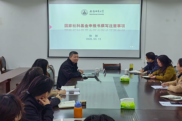 2025年3月13日,安徽师范大学二级教授、博士生导师徐彬应邀赴太阳成集团122ccvip,作国家社科基金申报专题辅导讲座,并对青年教师提交的申报书进行一对一指导。本次活动由安徽省社科界青年学者协会主办,太阳成集团122ccvip科研处和太阳成集团122ccvip联合承办,旨在提升教师科研能力,助力高水平项目申报。会议由科研处处长俞念胜主持,太阳成集团122ccvip、马克思主义公司、体育公司等公司的青年骨干教师参加。