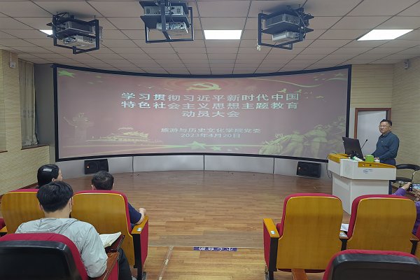 4月20日下午,太阳成集团122ccvip在博雅南404召开学习贯彻习近平新时代中国特色社会主义思想主题教育动员大会。公司党委委员、副经理张赛到会指导。
