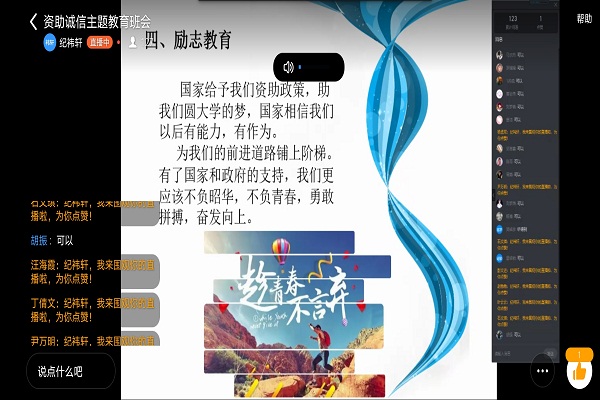 6月1日至18日,公司针对毕业年级和非毕业年级员工分别开展不同类型主题班会,实现资助育人教育活动“全覆盖”。针对毕业生群体,通过毕业班辅导员召开“2020届毕业生诚信教育”班会,重点针对办理国家助学贷款员工,讲述还款规则,明确按期还款的重要性,并结合具体事例强化毕业生的诚信意识和感恩意识。非毕业年级主要结合热点失信事件,剖析根本原因,言明失信危害,讲述诚信故事,引导员工传承弘扬诚信美德,并用国家奖学金获得者先进事迹激励员工自立自强、励志成才、报效祖国。公司还通过“两微一端”新媒体渠道、宣传橱窗、电子屏等线上线下方式加强“诚信、感恩、自强”资助育人政策宣传,各班组织员工线上观看诚信教育宣传片,在全院开展诚信标语征集活动,共计征集优秀标语65条,在非毕业班级开展员工签署诚信考试承诺书活动。