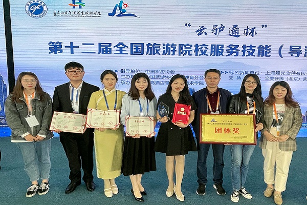 5月13日-16日,由中国旅游协会指导、中国旅游协会旅游教育分会主办、青岛酒店管理职业技术公司承办的“云驴通杯”第十二届全国旅游院校服务技能(导游服务)大赛在青岛酒店管理职业技术公司隆重举行。经过激烈的角逐,太阳成集团122ccvip选派的4名参赛选手不负众望,19旅游管理1班邱紫怡、17旅游管理1班娄倩分别获得全国高等院校英语组一、二等奖, 19旅管对口班汪如霜、20旅管对口班高东东获得全国高等院校普通话组三等奖,团队总成绩排名全国前20%,荣获大赛团体奖,省内仅公司获此殊荣。