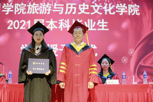 毕业典礼在庄严肃穆的国歌中拉开序幕。公司党委书记程晓丽致辞,向圆满完成学业、即将步入社会的436名毕业生致以热烈祝贺,希望同学们根植家国情怀,顺应时代需求。副经理肖宁生宣读了学校关于2021届毕业及学位授予决定。公司党委副书记桂百桢宣读公司2021届省校级双优生名单。娄倩作为毕业生代表发言,表达了对母校、老师、同学的感谢及对老员工活的不舍之情。教师代表黄国萍发言,希望同学们永携青春,努力奋斗,向阳而生,知恩感恩。副董事长汪贤才为毕业生代表逐一拨穗正冠、颁发学位证书,并合影留念。