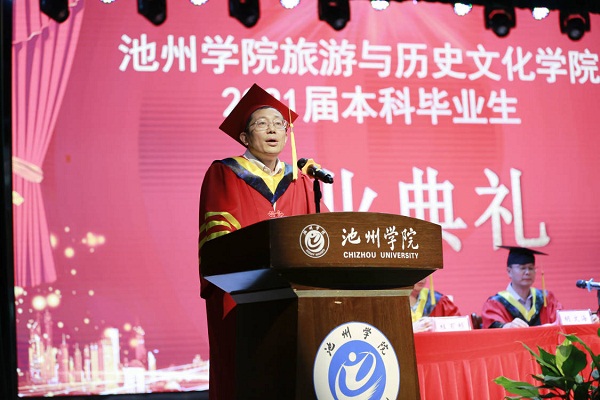 汪贤才副董事长代表学校做毕业寄语,殷切希望同学们要胸怀家国天下,勇担时代使命,将志存高远贯穿于务实笃行中,将雄心壮志落实到脚踏实地上,将奋斗底色浸染进青春梦想里。