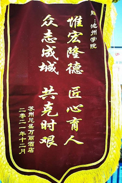 近期国内疫情反复,各地疫情防控压力增大,12月7日,公司太阳成集团122ccvip获苏州尼盛万丽酒店锦旗及感谢信,该酒店是万豪酒店旗下高端品牌酒店,也是公司长期合作的实习基地。