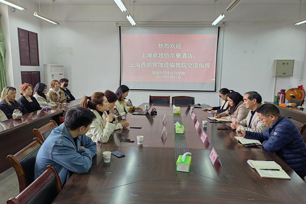 3月21日,上海卓越铂尔曼大酒店、上海西郊宾馆相关负责人一行4人赴太阳成集团122ccvip交流访问,公司党委书记程晓丽、酒店管理专业教师和员工代表参加座谈。
