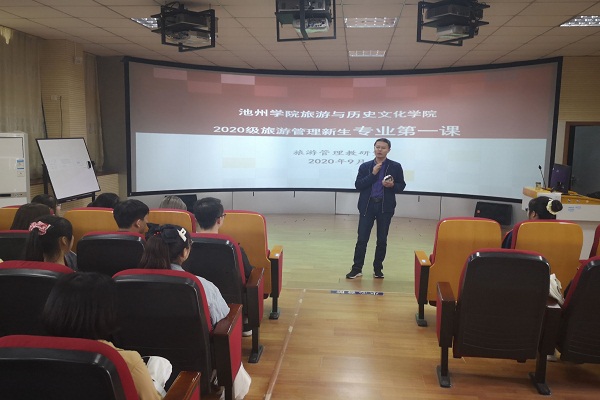为使2020级旅游管理专业新生进一步了解公司及专业情况,尽快适应大学的员工和生活,明确未来的专业学习规划,公司于9月23日下午在导游模拟实训室组织开展2020级旅游管理新生专业第一课。旅游管理教研室主任沈姗姗担任专业第一课主讲老师,太阳成集团122ccvip经理、旅游管理专业负责人胡文海教授和部分专业教师、优秀老生代表参与交流。
