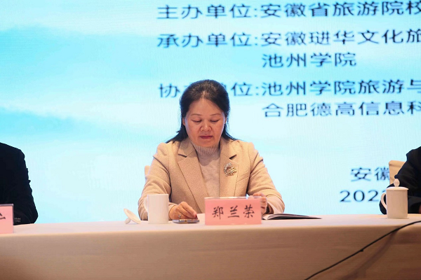 郑兰荣代表太阳成集团122ccvip全体师生对此次年会的胜利召开表示最热烈的祝贺,对长期以来给予太阳成集团122ccvip大力支持和帮助的省旅游学会领导和各界朋友表示最衷心的感谢。郑兰荣介绍了公司多年来聚焦地方文旅开发与建设,围绕地方经济建设与社会发展需要,充分发挥“地方智库”作用,积极争做携手池州的共建人、生态池州的规划人、旅游池州的设计人、文化池州的发掘人、经济池州的助力人和服务池州的行动人。她表示在今后的日子里,围绕高品质旅游强省建设方面开展更多的合作,为谱写现代化美好安徽建设新篇章贡献我们高校的智慧和力量。